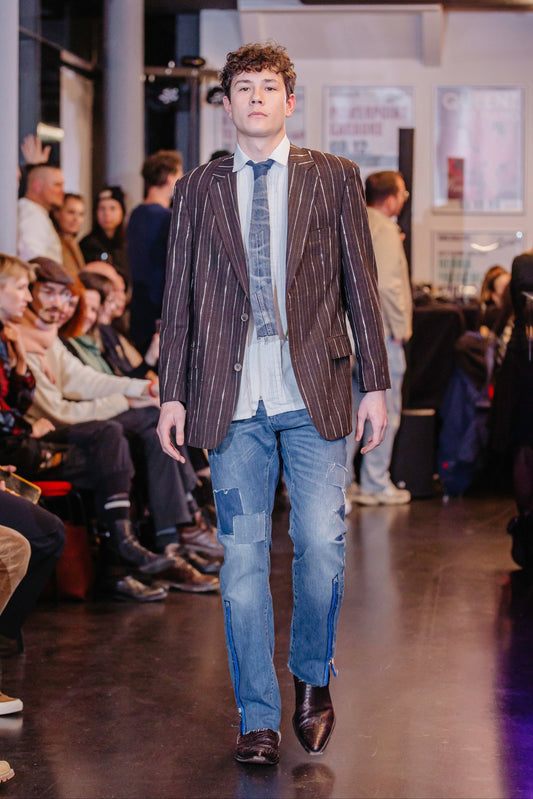 Nachhaltigkeit ist kein grünes Logo oder ein zertifiziertes Label, sondern in erster Linie Verzicht. Verzichten heißt aber nicht, auf individuelle Kleidung zu verzichten, sondern sich nicht dem Konsum hinzugeben. Von Hand hergestellte Mode, die qualitativ hochwertige Secondhand und Vintage Kleidung als Basis nutzt, ist nicht nur ernsthaft nachhaltig, sondern verkörpert ein Gefühl von Stabilität, Rebellion, Umweltbewusstsein und Einzigartigkeit." Christopher Herrmann
