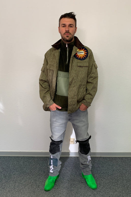 Upcycling Time Runs Biker Jeans Dunkelgrün W32 L32